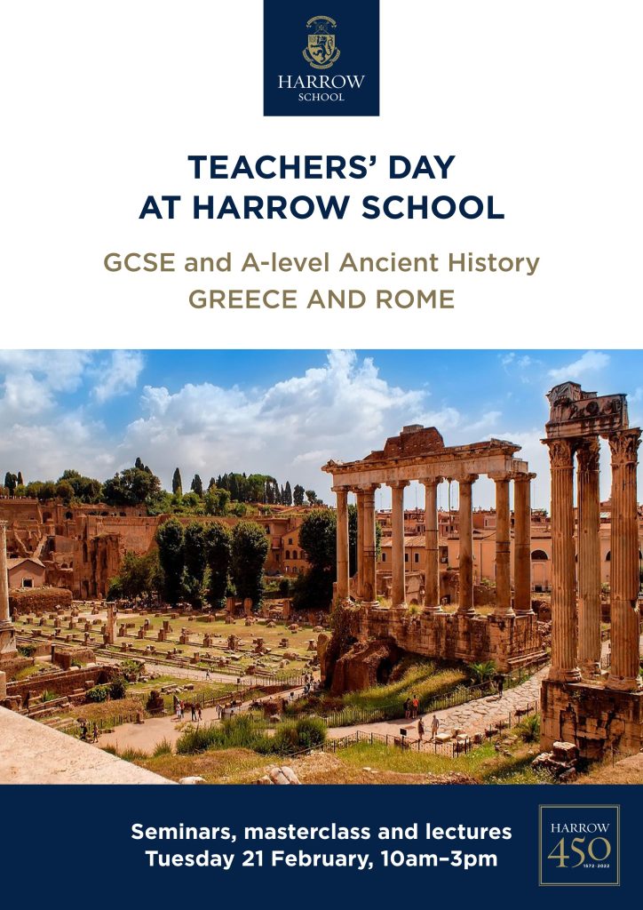 Harrow School is hosting an Ancient History Teachers’ Day, free and open to all teachers who teach or are interested at teaching Ancient History at GCSE or A-Level.