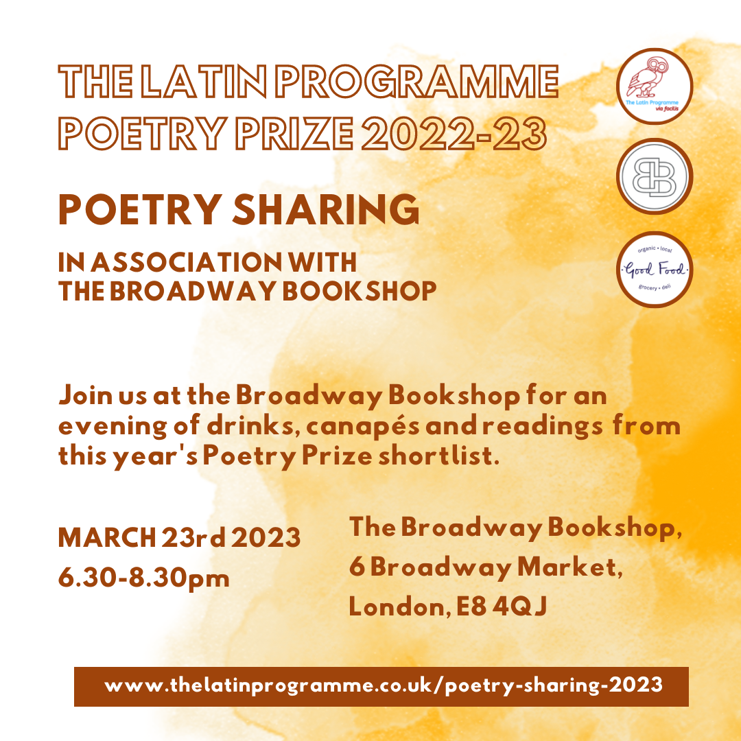 From the folks at TLP... Salvete omnes, Following a wonderful reading process led our three brilliant judges, Seán Street, Brighde Mullins and Jonathan Goddard, we're delighted to announce Sally Ashenhurst … Continue reading "The Latin Programme Poetry Prize: An Evening of Readings"